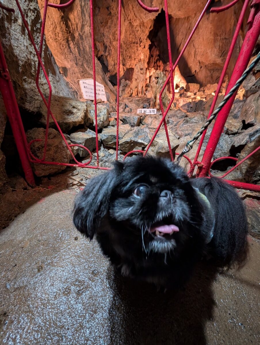 ロワくん、素敵なレポートをありがとう! ロワくんのご家族からコメントが届きました! --------- 場所としては、道のすぐ隣に鍾乳洞の入口があるためクネクネした道のストレスは少ないです! 鍾乳洞の前には鍾乳洞から出たお水でできた池があり川魚が泳いでました。庭としてキレイにされてるのでお散歩できます。 鍾乳洞は入口からすでに涼しい風が流れてきています!マナーベルト着用ならば歩かせていいそうです! 入ってすぐ鍾乳洞のお水が飲める所がありました! 人一人分の道幅ですが、すれ違えるので犬連れでない人に迷惑かけそうな時は横で待機できます。 ロワは橋みたいなところは最初怖かっようですが慣れればグングン進んで行きました! 各名称が付いている所はライトアップされていますが、その他の通路は暗いですがちゃんとライトが付いているので懐中電灯など照らさなくて大丈夫です! 所要時間は15分ぐらいです。 足はもちろん濡れます! とにかく涼しくて最高でした。 クーラーで冷えるのとまた別の感覚です!!