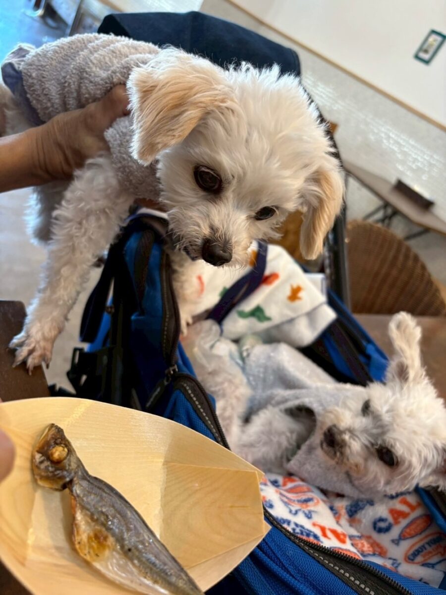 Luanaくん&Moaniくん、素敵なレポートをありがとう! Luanaくん&Moaniくんのご家族からコメントが届きました! --------- 干物屋さんのカフェ早瀬は、店内で美味しい干物も買えるし、干物を使ったどんぶりや、バーガー等が店内で食べれます。わんちゃんには、マメアジのサービスもあって嬉しいです。