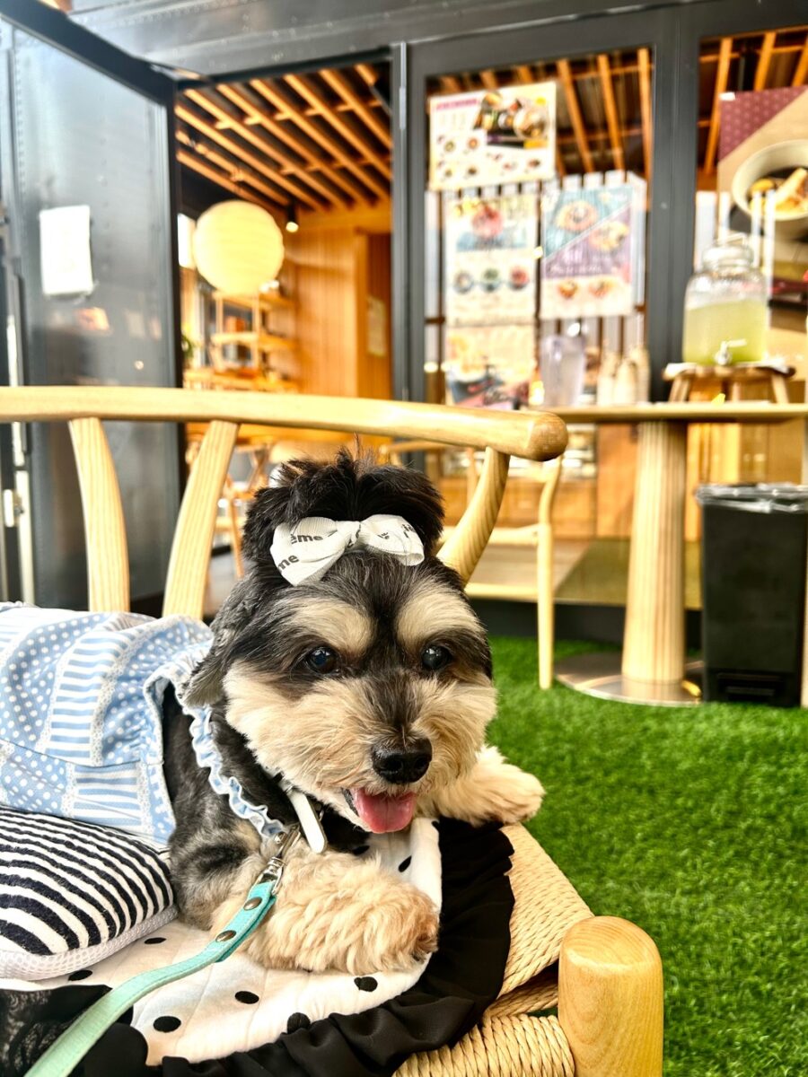 虎鉄くん、素敵なレポートをありがとう! 虎鉄くんのご家族からコメントが届きました! --------- 日進市竹の山でオシャレで人気の飲食店を展開する会社さんから新たに誕生した和菓子店。お餅が柔らかくて美味しいです。ランチタイムには選べるお雑煮ランチがあります。イートインスペースはマナーウェア・リード着用でわんこ同伴可能です。 (系列店:the gram、three little pigs、and cafeがありいずれも屋内テラス席わんこ同伴可能です)