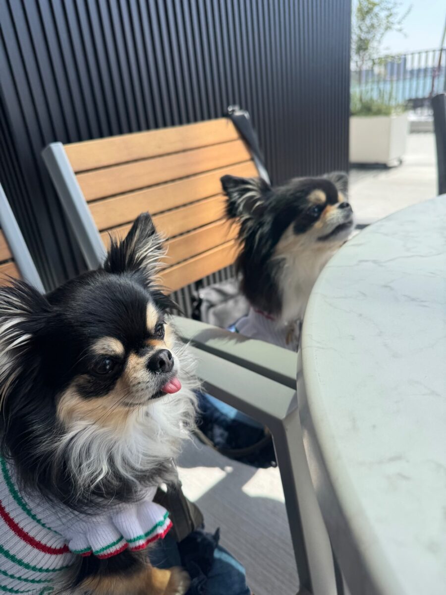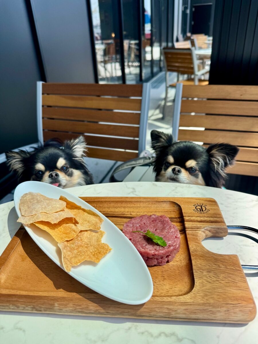 リクくん&ソラくん、素敵なレポートをありがとう! リクくん&ソラくんのご家族からコメントが届きました! --------- ジーライオンの海側2階にあるオーシャンビューのステーキレストラン サクレフルールさん、心地よい海風を感じながらおいしいお肉をいただけて最高でした。 看板前の撮影中、お肉のいい匂いがする方ばっかり向いていたリクとソラ。 ご厚意でご用意くださった味付けなしの馬肉タルタルステーキをあっという間に完食! その後もホットストーンで焼くステーキ肉とくれないパパを凝視!! ずーっとそわそわしつつ楽しそう。 スタッフの方もわんこフレンドリーで優しい方ばかりで、家族みんなでおいしく楽しく過ごせて大満足でした。