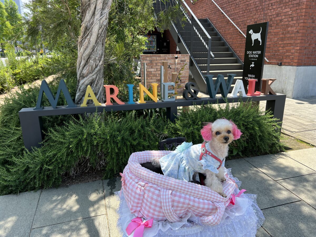 初めての横浜。 ワンコウェルカムなマリンウォーク。 わんちゃんの水飲み場やトイレポールまで完備されていて、びっくり! 場内もマナーが守られていてとても綺麗でした!