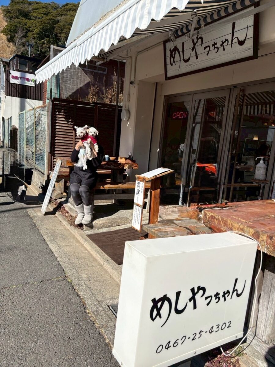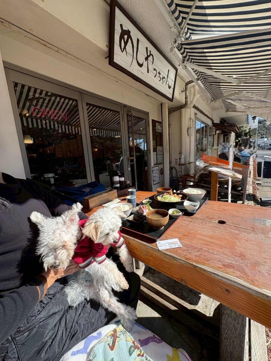 逗子・小坪漁港のすぐそばにある「めしやっちゃん」は、獲れたての海の幸を存分に味わえる大人気の定食屋さんです。 名物の生しらすや地ダコなど、漁港直送の新鮮なネタを驚きのボリュームとリーズナブルな価格で楽しめます。 開放的なテラス席は12席あり、わんこ同伴OK! リードフックも完備されているので、愛犬と一緒に安心して過ごせます。 潮風を感じながら愛犬と並んでいただく豪華な海鮮丼や定食は、まさに漁師町ならではの贅沢なひととき。 その日の漁次第で変わる「本日の地魚メニュー」は、訪れるたびに新しい美味しさに出会える楽しみがあります。 行列ができることも多い有名店ですが、回転が早いので愛犬とのんびり待ち時間を過ごすのも良い思い出に。