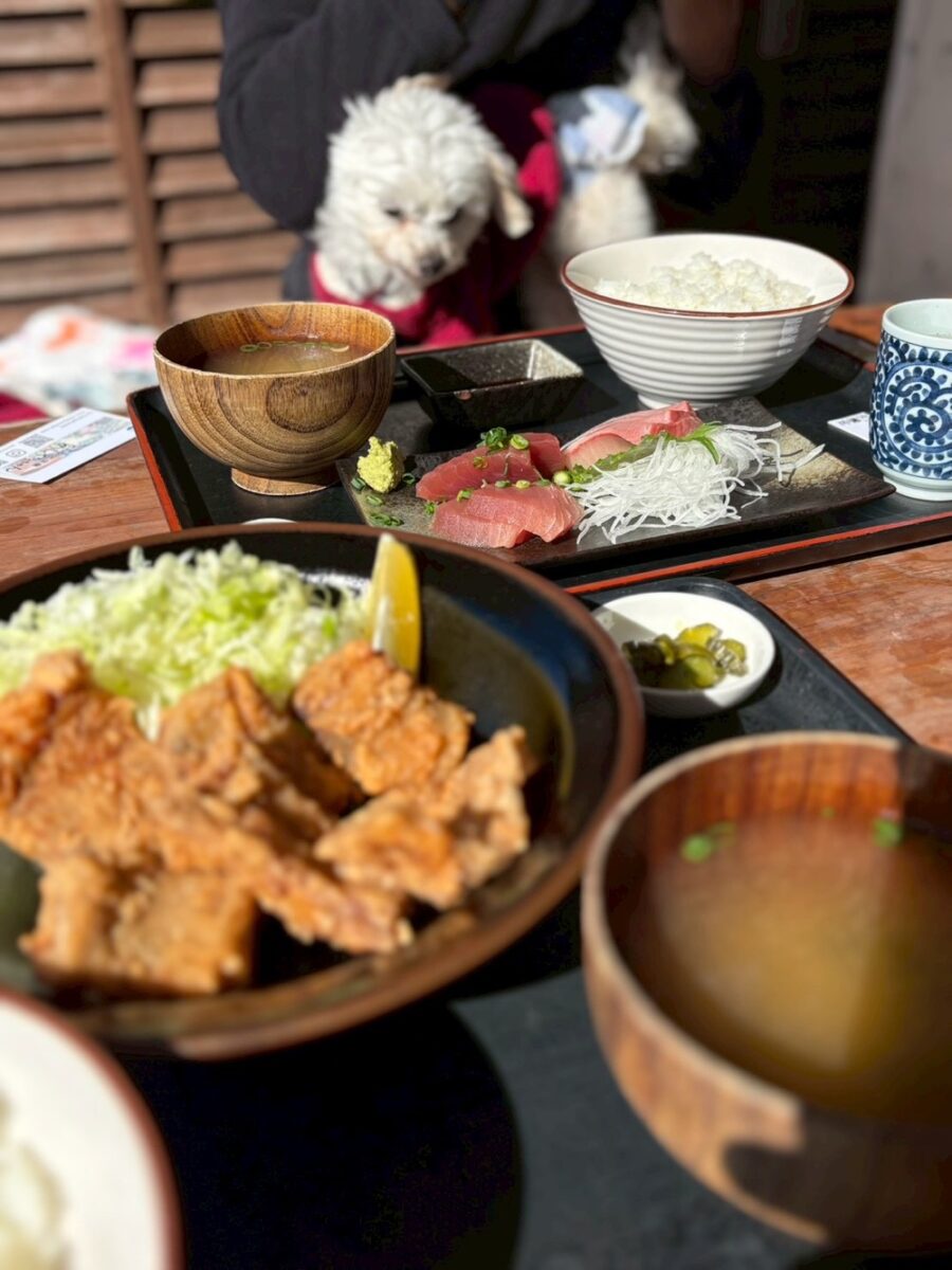 Luanaくん&Moaniくん、素敵なレポートをありがとう! Luanaくん&Moaniくんのご家族からコメントが届きました! --------- 新鮮な海鮮どんぶり定食の美味しい大人気店。テラス3卓が、わんちゃんOK。お店の方も、とても優しくて、提携駐車場の台数も沢山あるので、便利です。