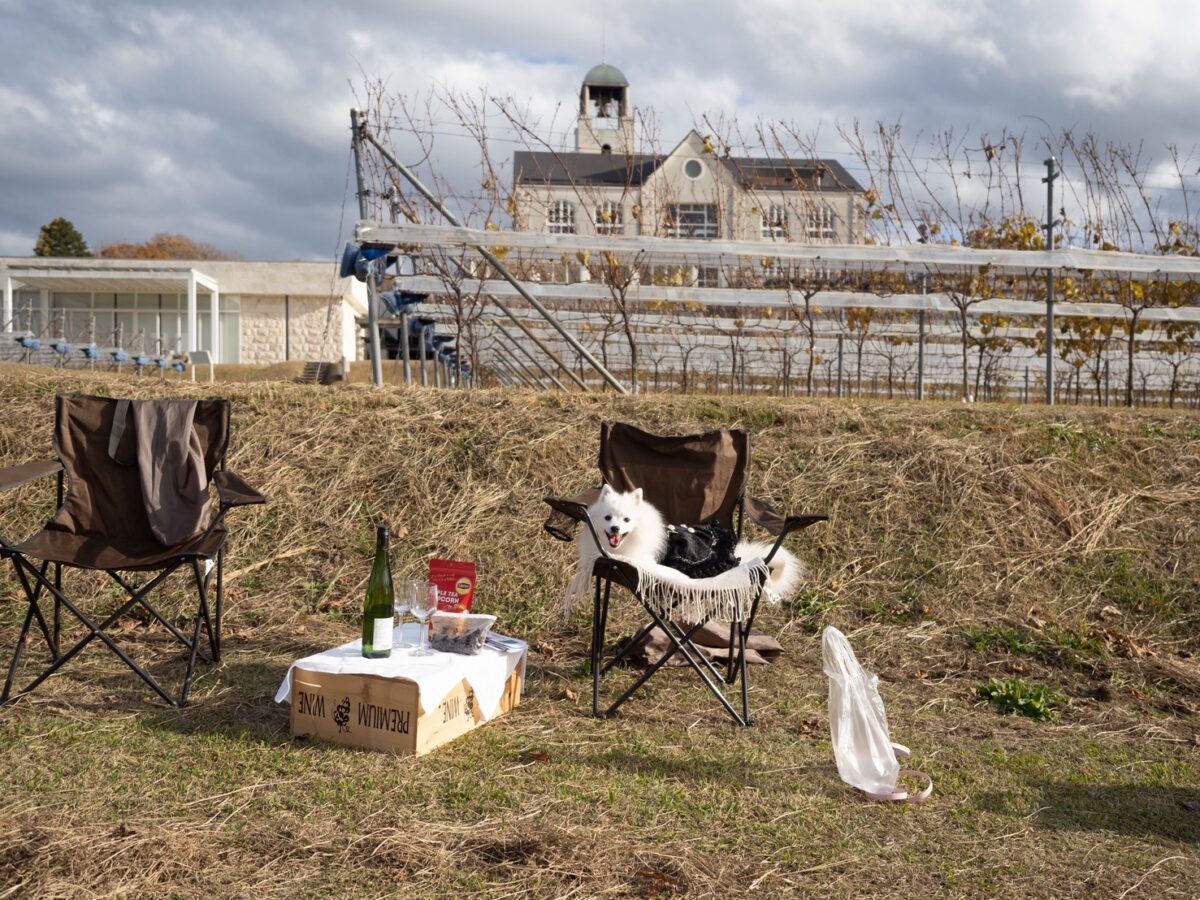 事前に犬の同伴の不明点についてメールで問合せましたが、とても丁寧に対応頂きました。 乗馬パドック横にある「マーヴェリック」さんでランチしましたが、テラス席はペット可で、カフェマットを敷けば椅子の上もOKでした。 犬用のメニューはありませんが、お水は頂けました! スタッフさんも愛犬に優しく、ゆったりとランチできました。 ワインのテイスティング中はすぐ外のテラスに犬を待機させられるので安心してワインを選ぶことができました。 購入したワインをそのままブドウ畑で飲むことができます。 2時間制ですが無料でアウトドアチェア2脚とグラスを貸していただけるのでゆったりと愛犬とワインを楽しむことができました! ※修善寺駅からの無料シャトルバスはキャリーに完全に入っている状態で2頭までOKです。 マイクロバスなのでバギーは折りたたむことになると思います。