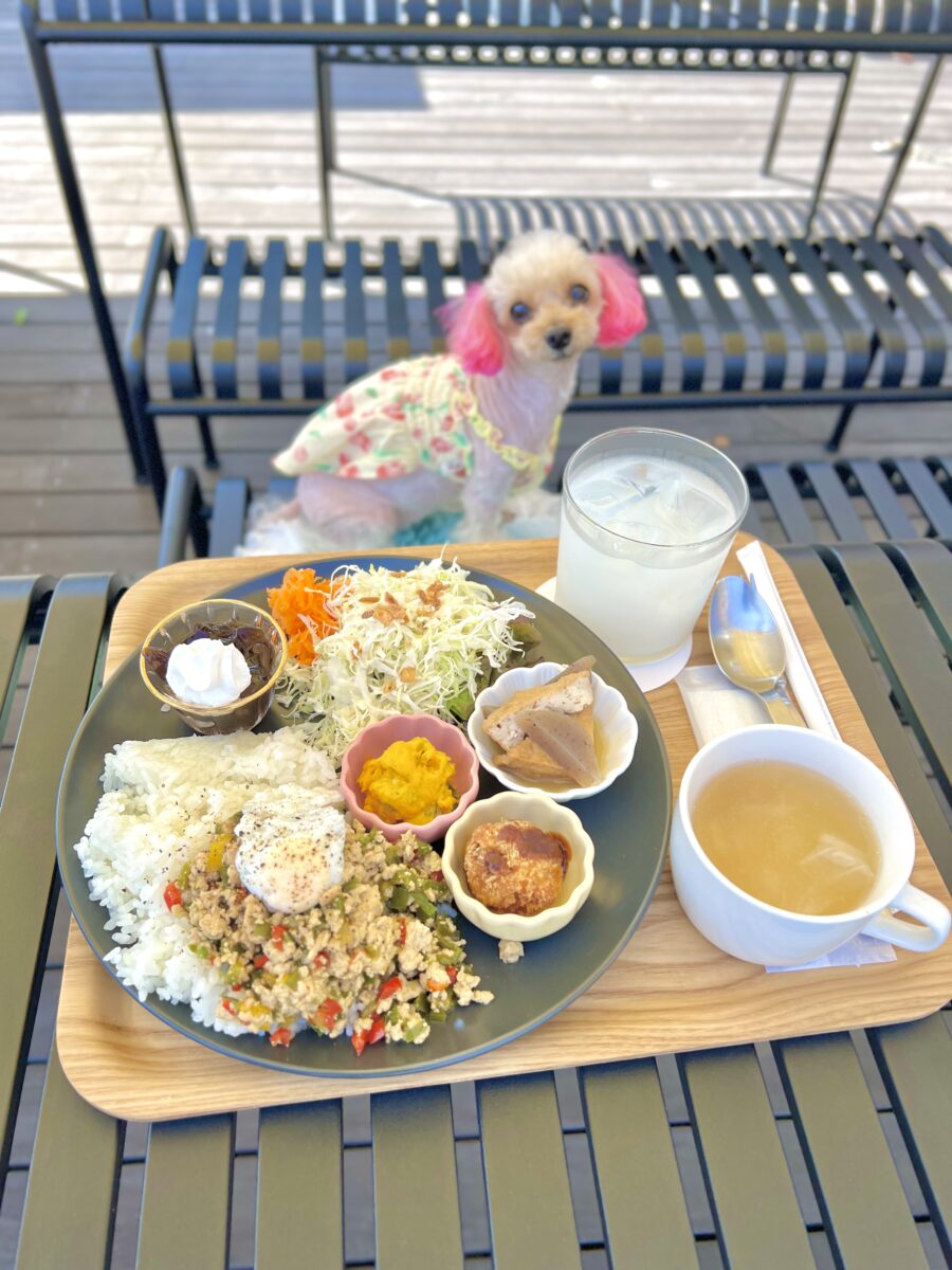 貝塚駅から降りて徒歩1分以内にあるお店。 コワーキングスペースを併設したカフェで、広いテラス席がわんちゃん同伴可。 屋根もあるので多少の雨や日差しは大丈夫! 日替わりランチが美味しかった〜