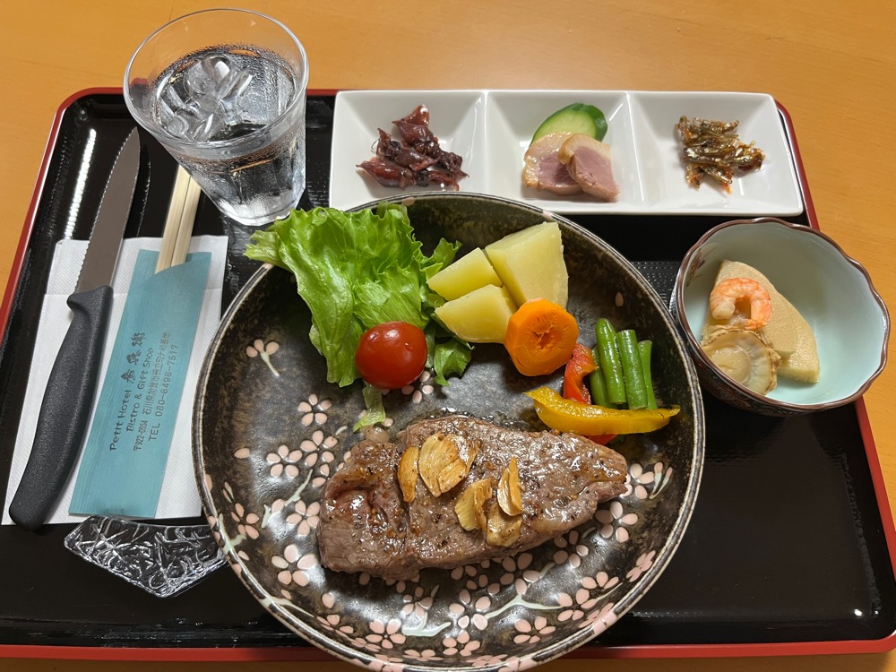プチホテル彦兵衛(石川県加賀市)は、日本遺産に指定された「北前船主集落 加賀橋立」にある、犬と泊まれる唯一の宿です。 カフェを併設し、「わんこと過ごすオーベルジュ」をコンセプトにしています。 お食事には、地元の鮮魚や能登牛、加能ガニなど旬の食材を使った料理が並びます。 愛犬と一緒に、地域ならではの味覚をゆったり楽しめます。 宿泊できるわんちゃんは、1頭あたり体重25キロまでOK。 多頭の場合は3頭まで、ただし合計で25キロまでとなります。 25キロを超える場合は貸切利用のみ可能で、1頭上限35キロまで対応しています。 添い寝もOKなので、愛犬との距離を縮めて安心して過ごせます◎