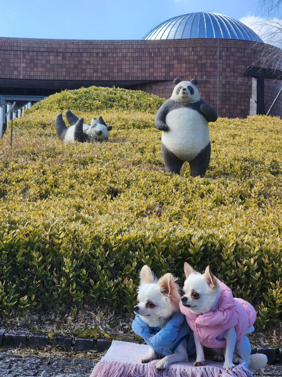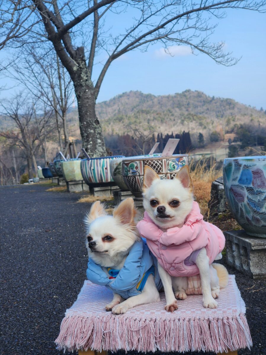 滋賀県立陶芸の森は4つのエリアがあり、陶芸品と緑いっぱいの大きな公園です。 施設内はわんこ入れませんが、あちこちに不思議なモニュメントや写真スポットがあったり、焼き物の作品や椅子、テーブルも沢山あって、わんこと散歩をしながら楽しめます!! 駐車場もエリアごとに沢山あるのも嬉しい!! カーストッパーがわんこの焼き物で、みんな色や顔が違うのも見るとおもしろいです。 駐車場も入園料も無料!!(施設によっては冬季休暇もあるみたいです) 近くにはわんこと陶芸体験ができたり、食事ができるお店もあるから、信楽は1日わんこと楽しめるから大好きです!!