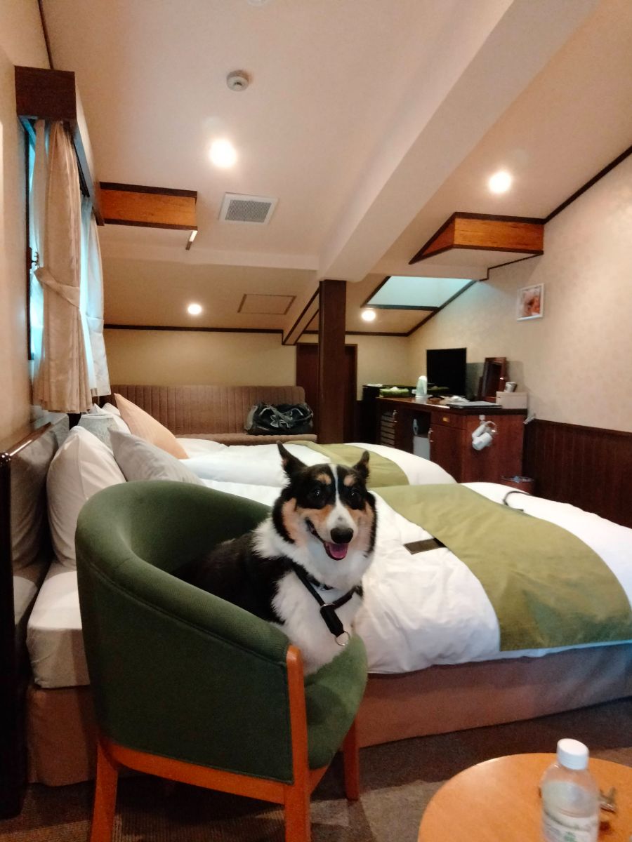 夕食前のチェックインだったので、ホテルのドアを入るとすごく美味しそうな良い匂い。期待を膨らませレストランに行くと、地元の食材を使った美味しそうな料理が次々と運ばれてきました。カルビーにはわんちゃんバイキングを注文。カルビーの誕生日だと特に言ってなかったんですが、サプライズで誕生日ケーキを用意してくださり本当に感動しました。めちゃくちゃ良い思い出ができました。また春に行きますね。