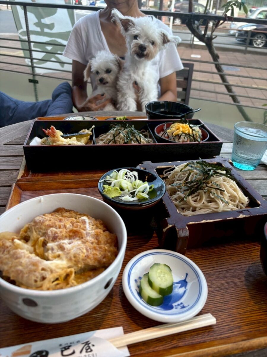 Luanaくん&Moaniくん、素敵なレポートをありがとう! Luanaくん&Moaniくんのご家族からコメントが届きました! --------- JR相模線寒川駅の駅前の美味しいお蕎麦巴屋。2卓あるテラス席がわんこOK。どんぶりとお蕎麦のセットなど種類が豊富で迷っちゃいます。