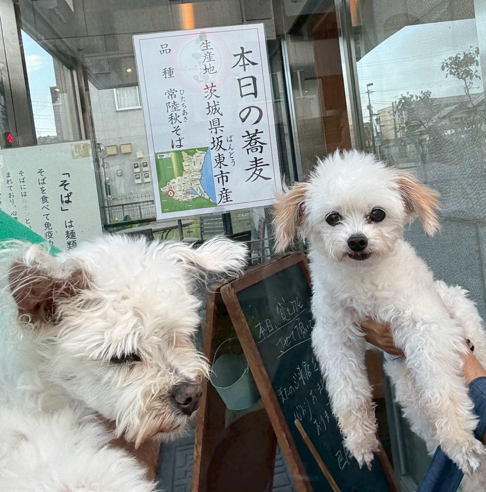 Luanaくん&Moaniくん、素敵なレポートをありがとう! Luanaくん&Moaniくんのご家族からコメントが届きました! --------- JR相模線寒川駅の駅前の美味しいお蕎麦巴屋。2卓あるテラス席がわんこOK。どんぶりとお蕎麦のセットなど種類が豊富で迷っちゃいます。