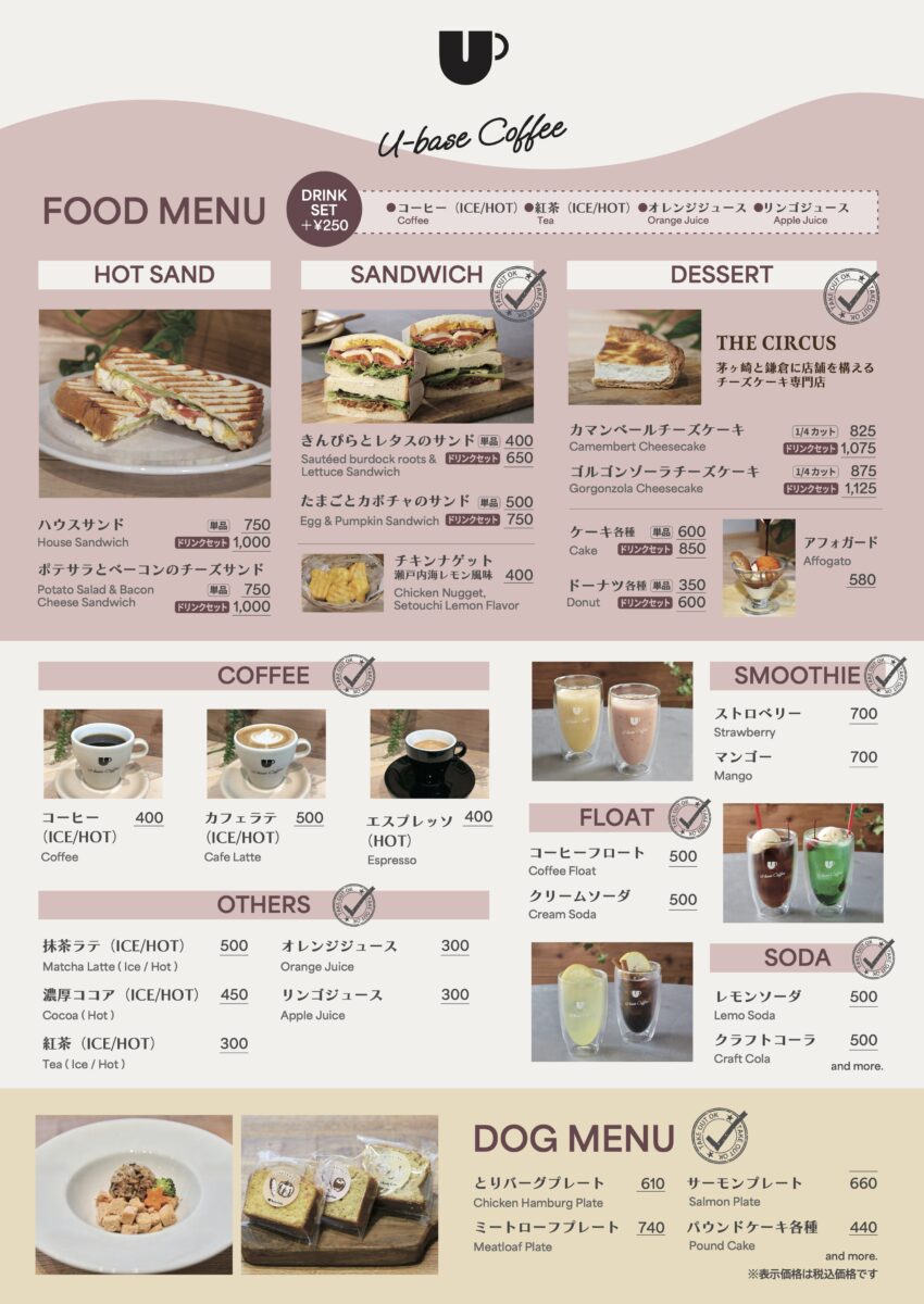 『ウエインズパーク海老名』にあるU-BASE棟では、愛犬と一緒に楽しめるドッグカフェやドッグランをご利用いただけます。 愛犬と一緒に、ご家族みんなでゆっくりとおくつろぎください。無添加・グルテンフリーのドッグメニューを豊富に揃えています。 ドッグランは、ワンちゃんの大きさを問わずご利用いただけます。小型犬エリアと中・大型犬エリアに分かれているので、安心してご利用ください。 また「U-BASE海老名」店内にはアウトドアショップやフィッシング用品とともに、厳選されたペット用ギアを販売しています。 さらにキャンプサイト「U-BASE CAMP」では、BBQやペットと一緒に泊まれるコテージやテントサイトもご用意しております。 <施設様より同伴条件とお願い> 1年以内に「狂犬病」及び「混合ワクチン」の接種が確認できない場合はご利用いただけません。 噛み癖や他の犬や人に危害を与える恐れのあるペットのご利用はお控えください。 排泄物は指定の場所へ捨てるか、お持ち帰りください。 ペットからめを離さないようにしてください。 人や他のペットに対してマウンティング、追い回し、必要以上に吠える、威嚇行為等をした場合は速やかにとめてください。