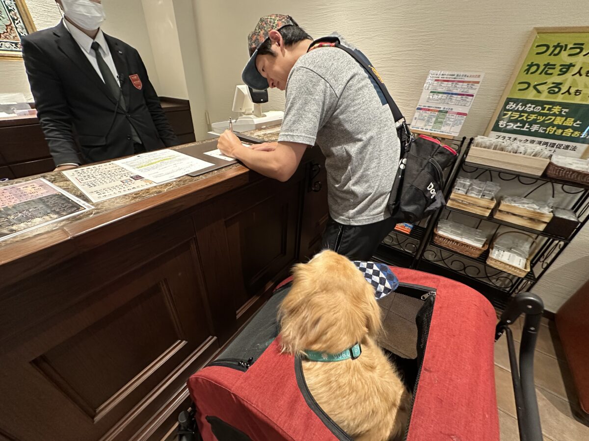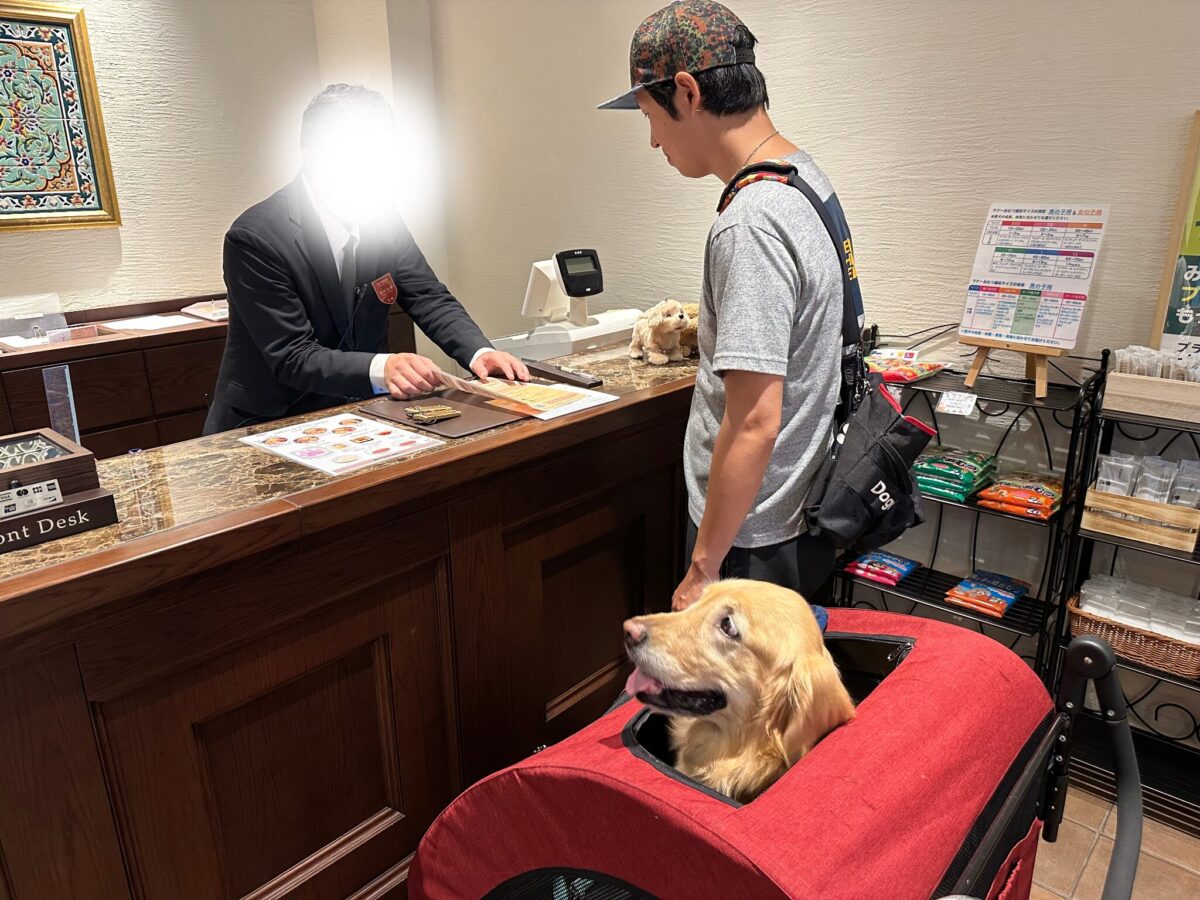 愛犬は“幅60cm・全長120cm以内のキャリーやペットカート”に入れ、フタを閉めた状態でお部屋まで向かいますよ~。