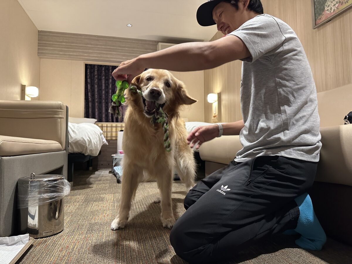 大型犬でも広々くつろげる空間と、大きなペットケージも収納でき、軽く室内遊びもできほどの広さだったので、ストレスなく過ごせました。