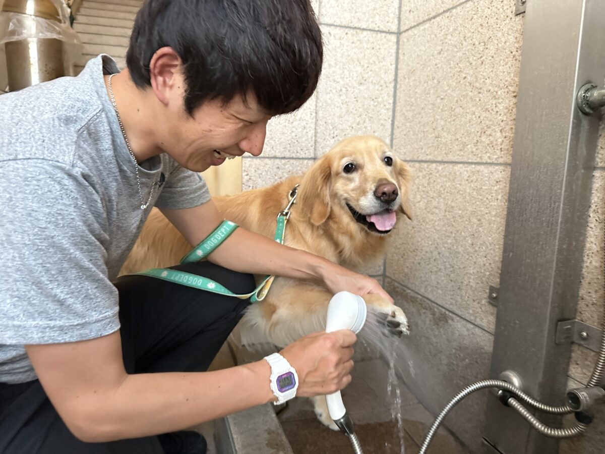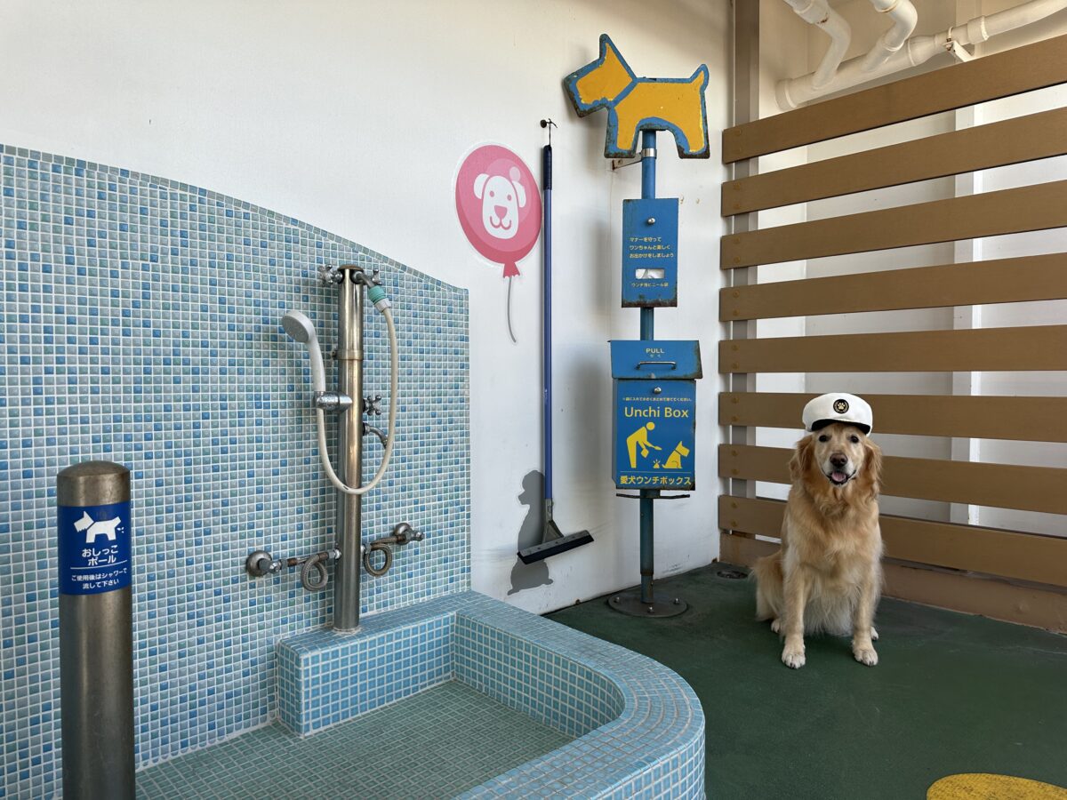 うんちBOXやおしっこポール、広いシャワースペースもあるので、外で排泄が必要な子でも安心できる設備が整っていました。
