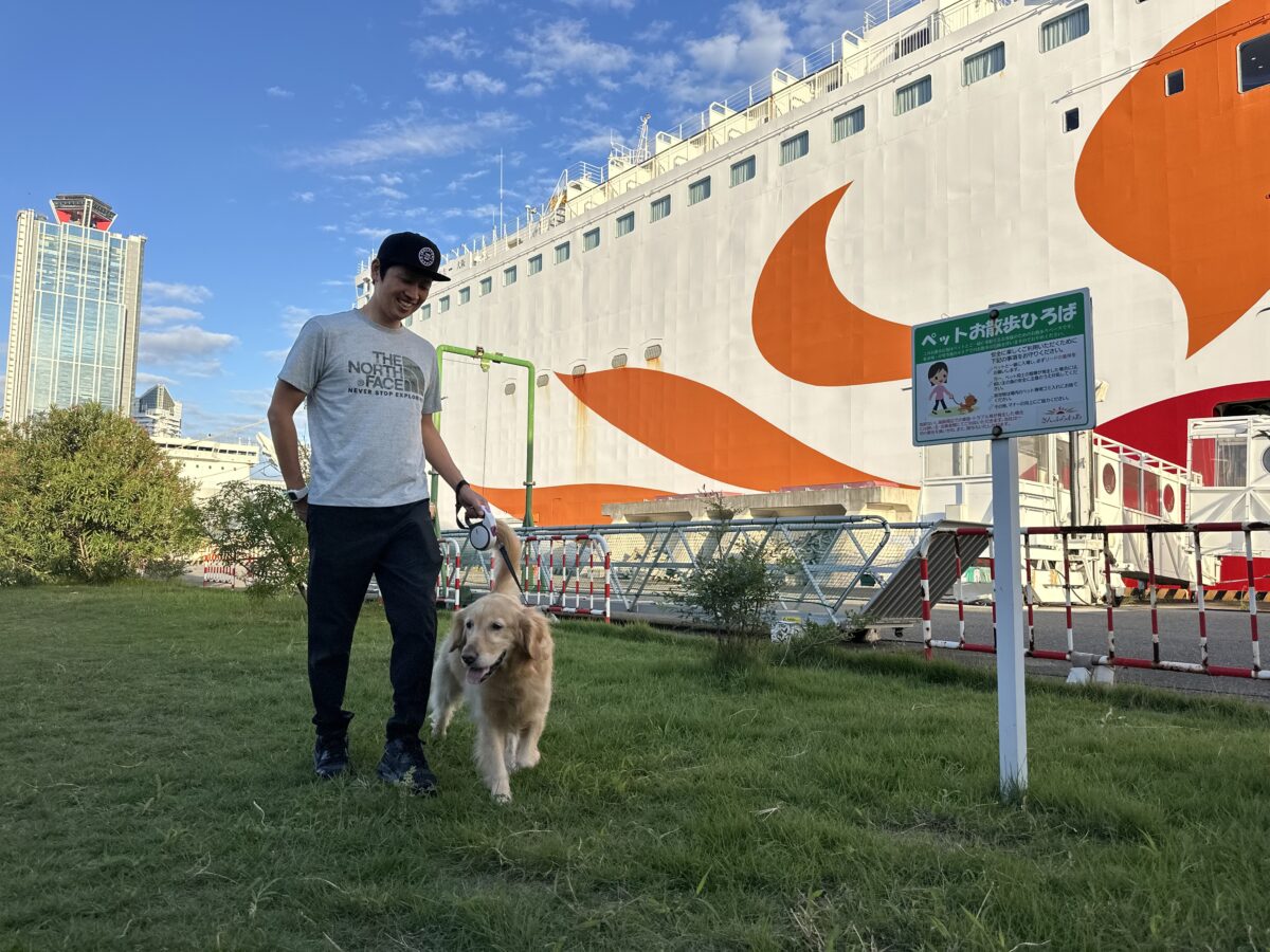 また、ターミナル敷地内には、うんちBOX等も設置されたペットお散歩ひろばも用意されているので、乗船前にモコちゃんもリフレッシュできました。