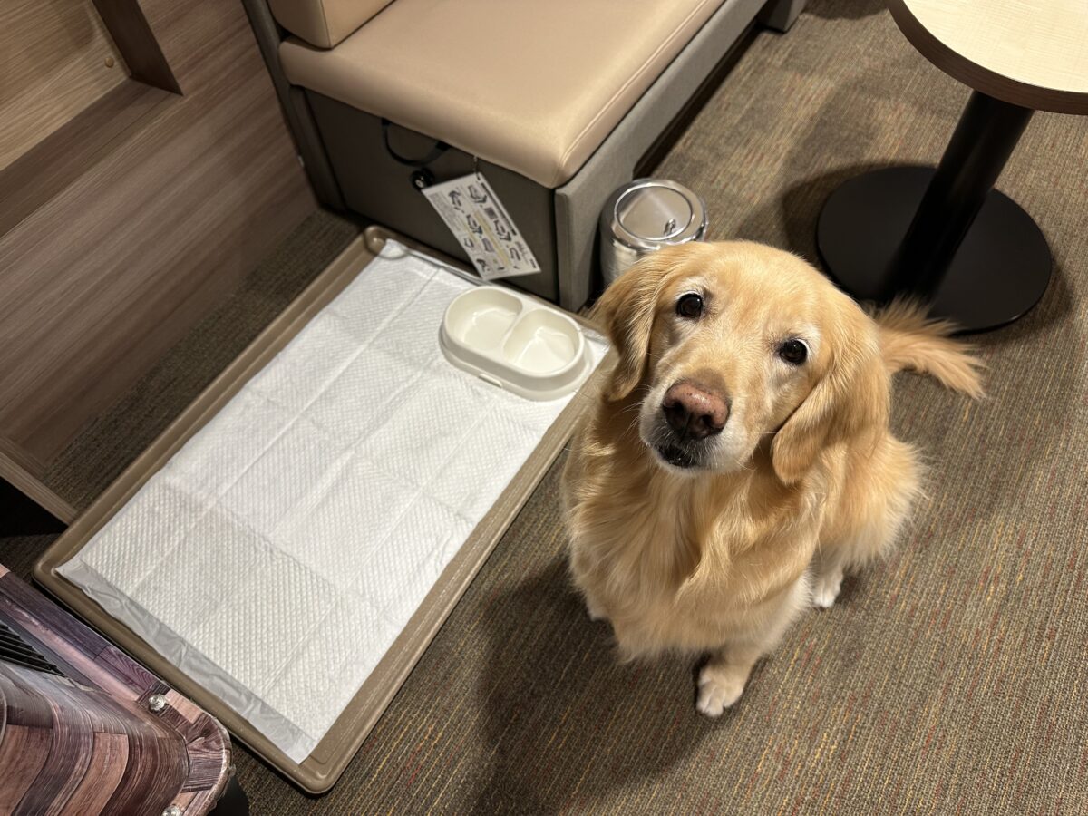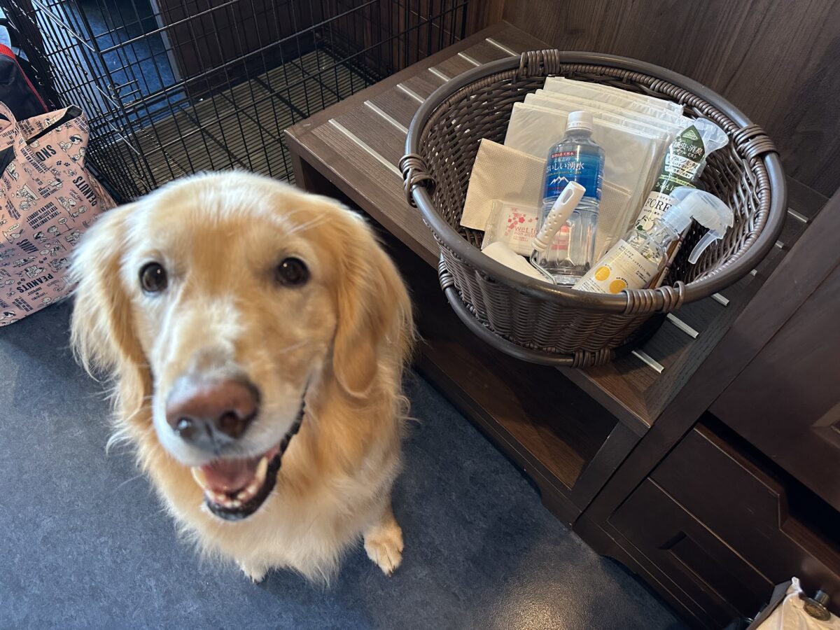スーパーワイドのトイレシートとトレー、ペットトイレ用の蓋付きゴミ箱、コロコロなどのわんちゃん用アメニティもあり便利でした。
