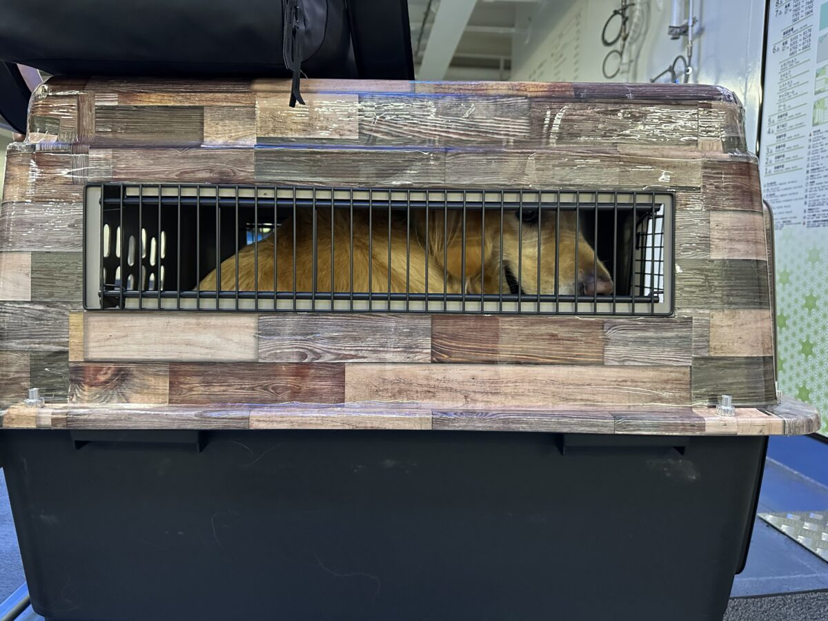 愛犬を専用のケージに預けられるサービスです。愛犬とは別々のお部屋になってしまいますが、乗船中はいつでも面会OK!好きなタイミングで会いに行けるので安心です。