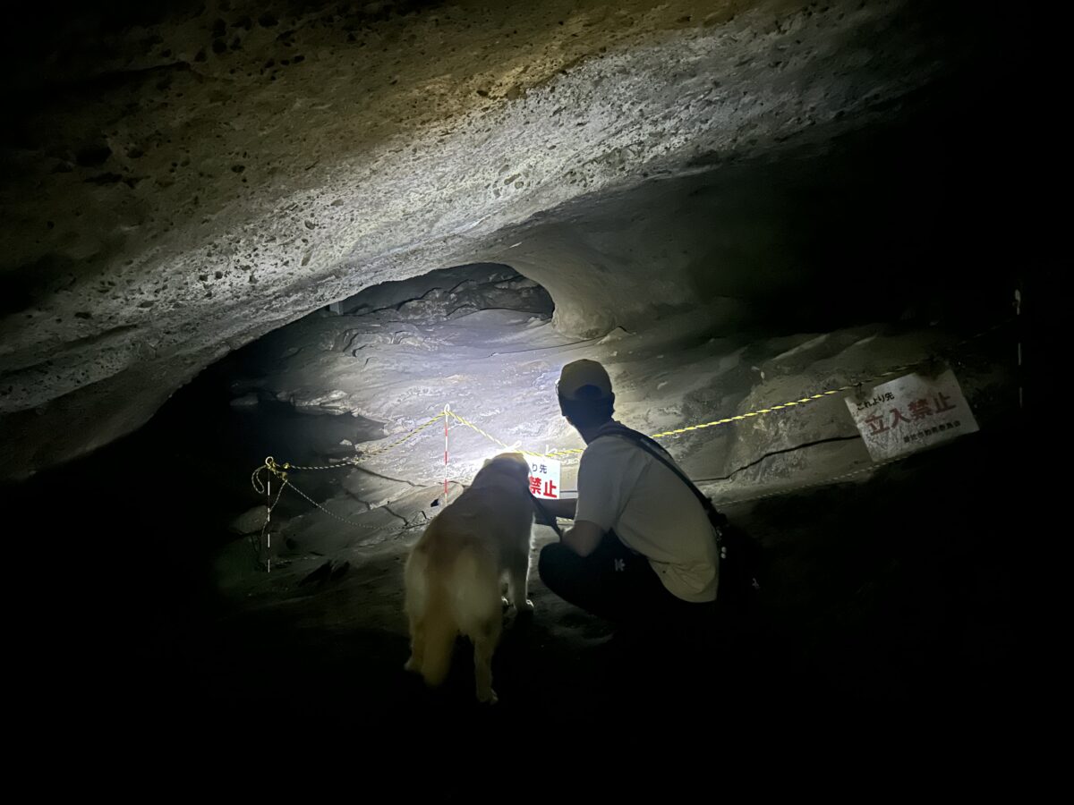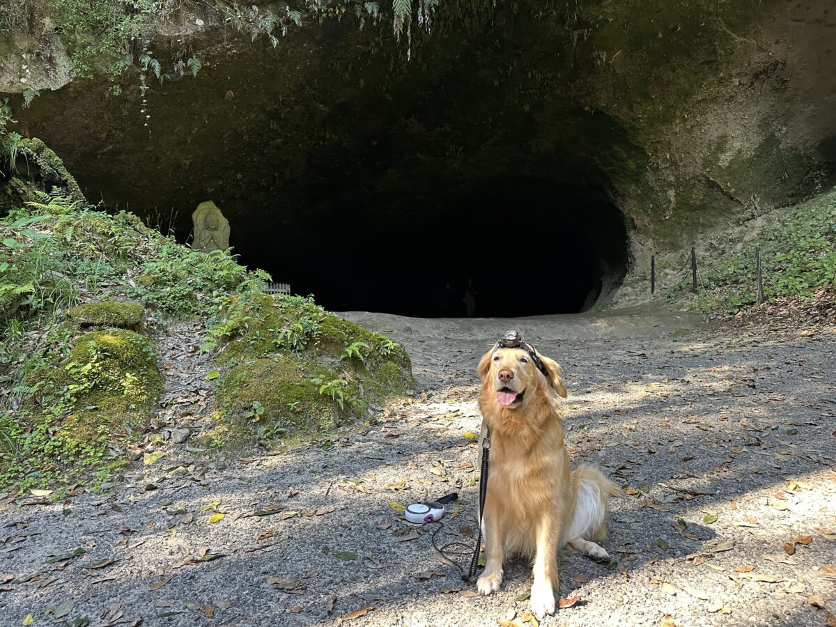 横幅14.6m、高さ6.4mの入り口の先には、暗闇の洞窟が続き、愛犬と一緒に探検隊になった気分を味わえます!