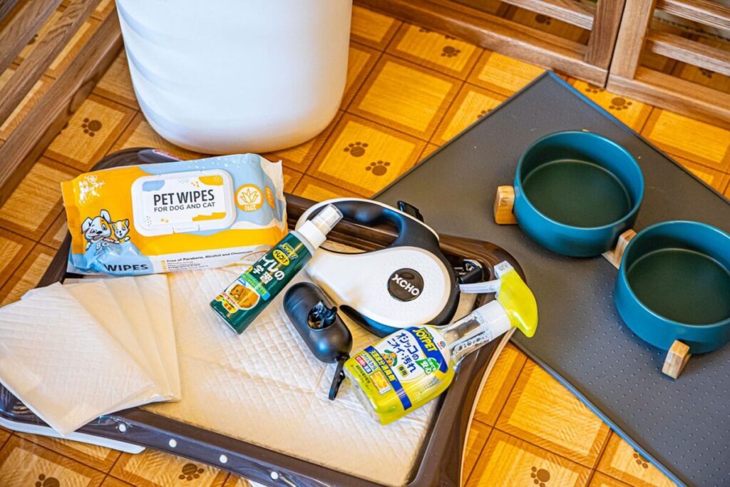 フードボウルからエチケット袋までが種類豊富に準備されているので、お泊まりの荷物が増える心配もありません。