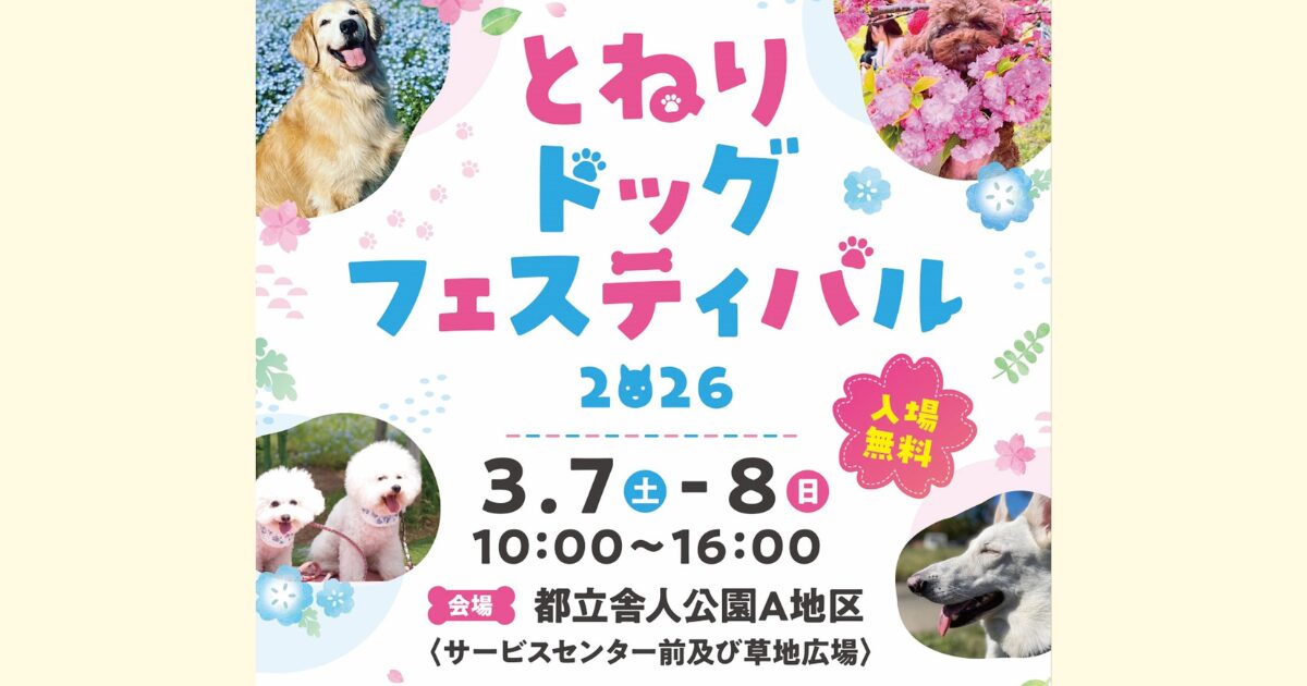 今回が初開催となる「とねりドッグフェスティバル」は、2026年3月7日(土)~8日(日)の2日間限定で行われるドッグイベントです。