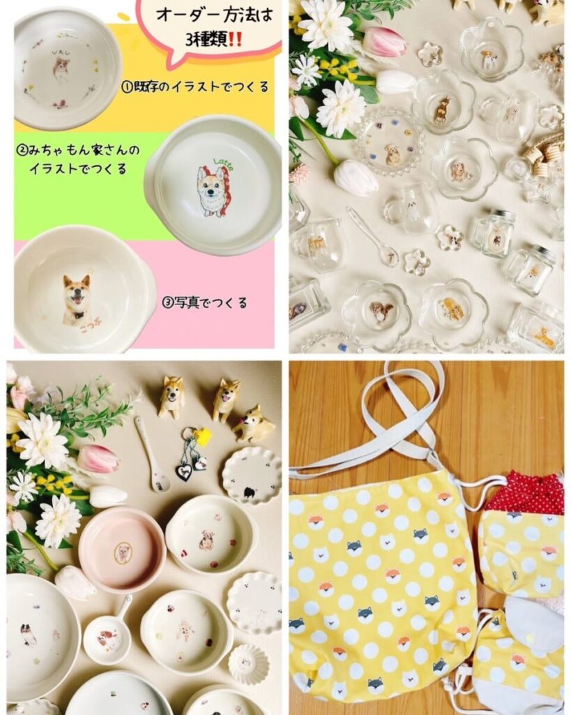 わんにゃんのお皿と雑貨のお店です。オリジナルのフードボウルは、既存イラスト・オーダーイラスト・愛犬の写真から選んで制作可能。