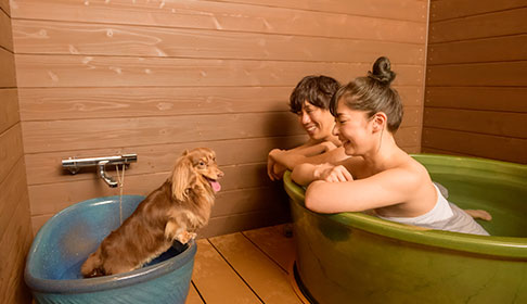 露天風呂付客室も用意されており、愛犬とずーっと一緒に過ごせます。