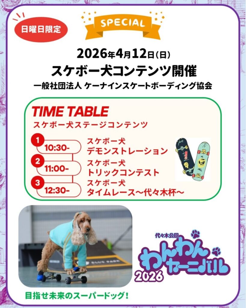 ・スケボー犬コンテンツが今年も開催(4/12 〈日〉 限定)