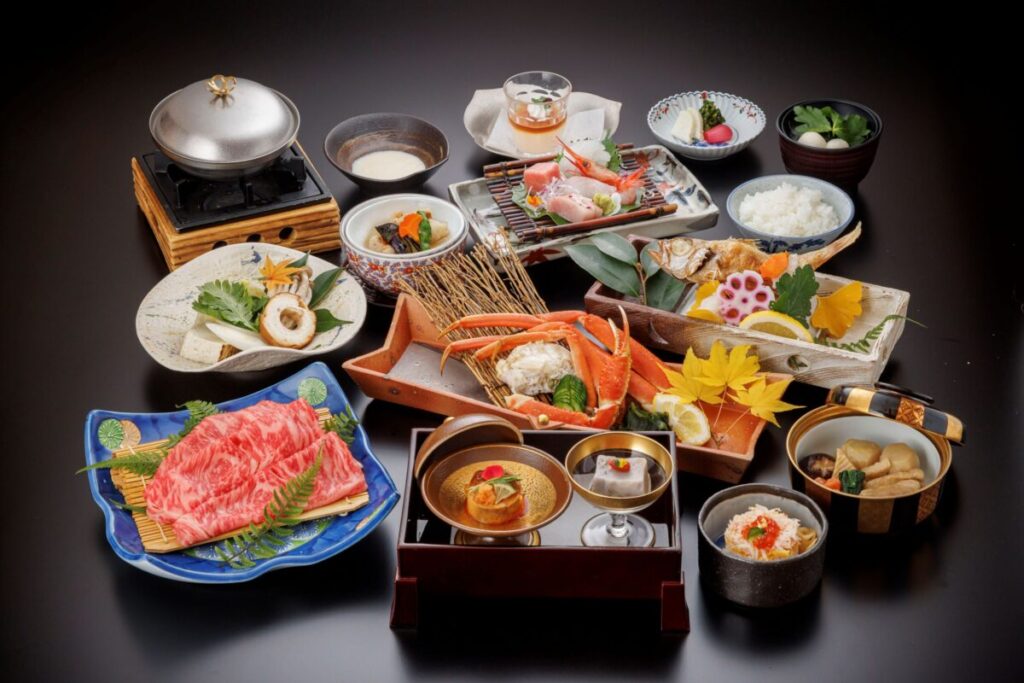 「わんわんリゾート 矢田屋松濤園」が贈る冬だけの特別な会席は、蟹を中心に季節の一品を味わえる贅沢な料理になっています。