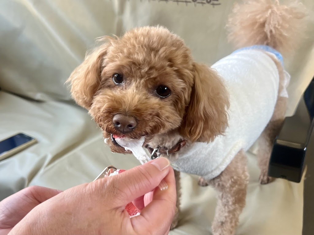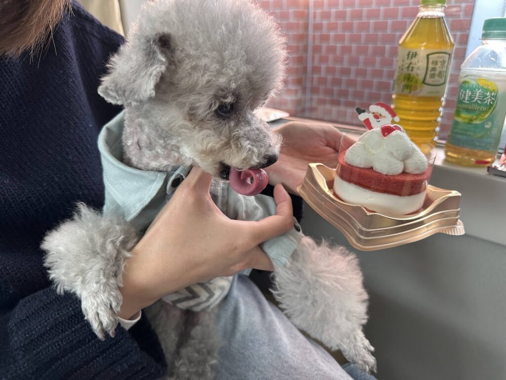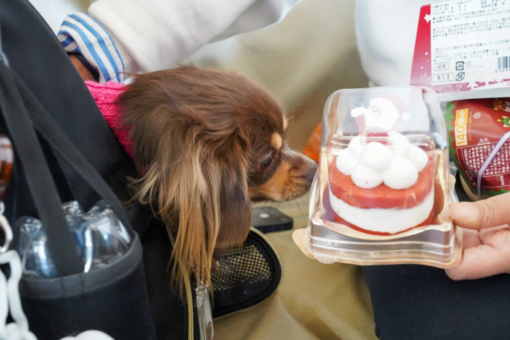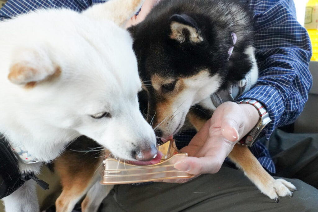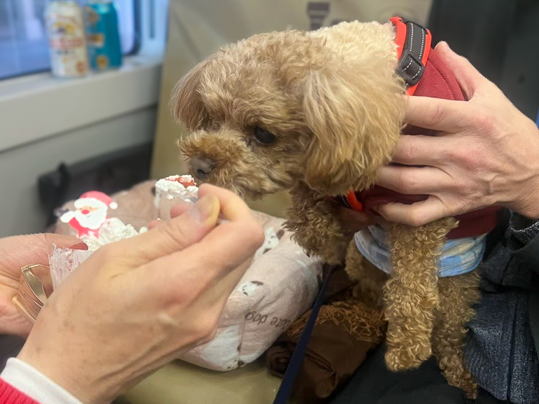 上手にスプーンで食べる子もいれば、飼い主さんと仲良く一口ずつ食べる子、あっという間に完食しちゃう子。それぞれのおいしい時間を楽しみながら、車内は一足早いクリスマス気分に包まれました♪