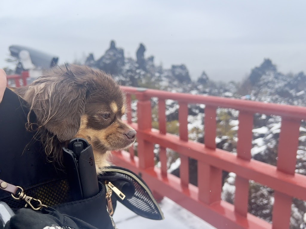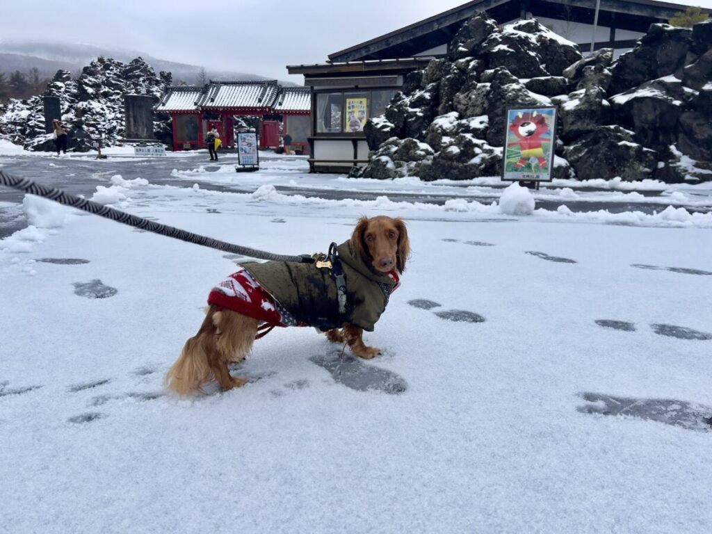 雪の「鬼押出し園」で愛犬と溶岩散歩コース