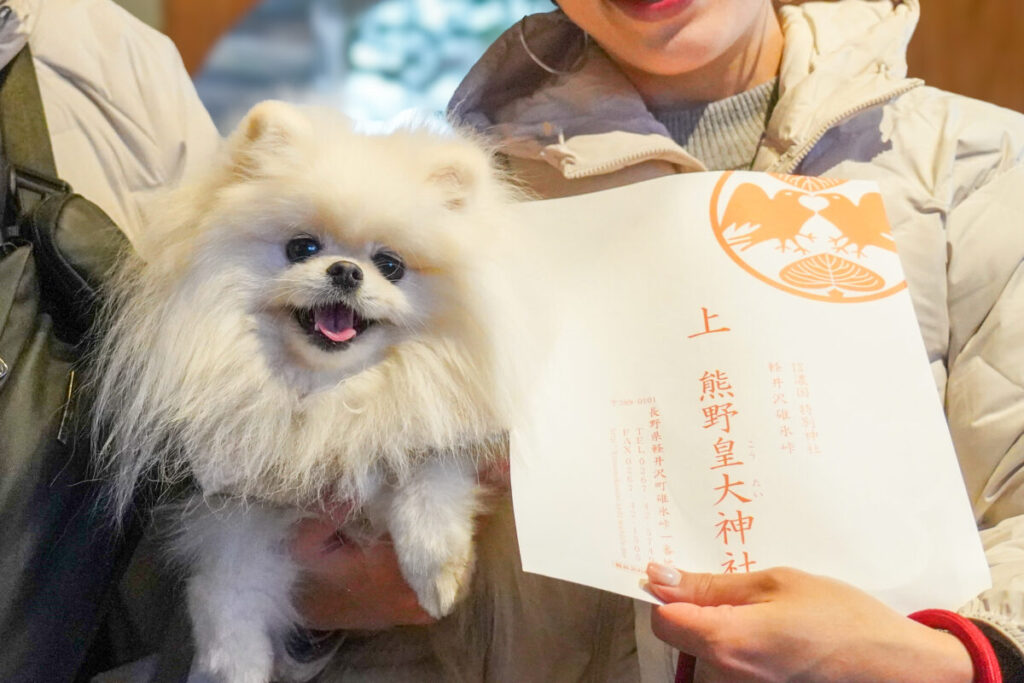 肉球手形を押して健康長寿を祈願したり、パワースポットとしても大人気の樹齢1000年の御神木「しなの木」を間近で見上げたり。愛犬と一緒に過ごす時間が、いつもより少しだけ特別に感じられました。