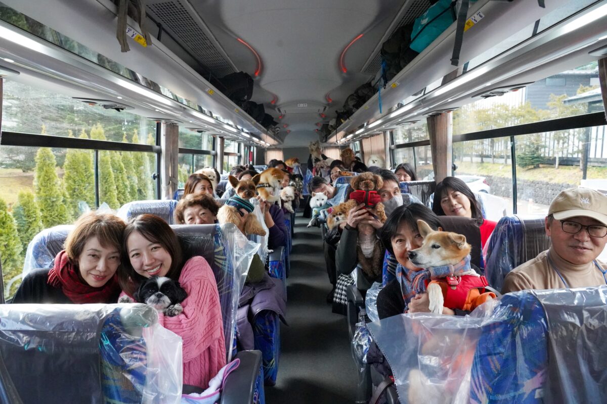 もちろん、現地到着後の専用バス内も愛犬はケージレスでOK! 最初から最後まで、わんこも飼い主さんもず〜っとリラックスして一緒に過ごせます♪