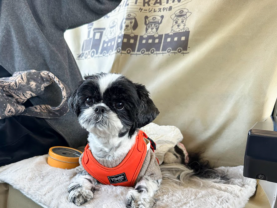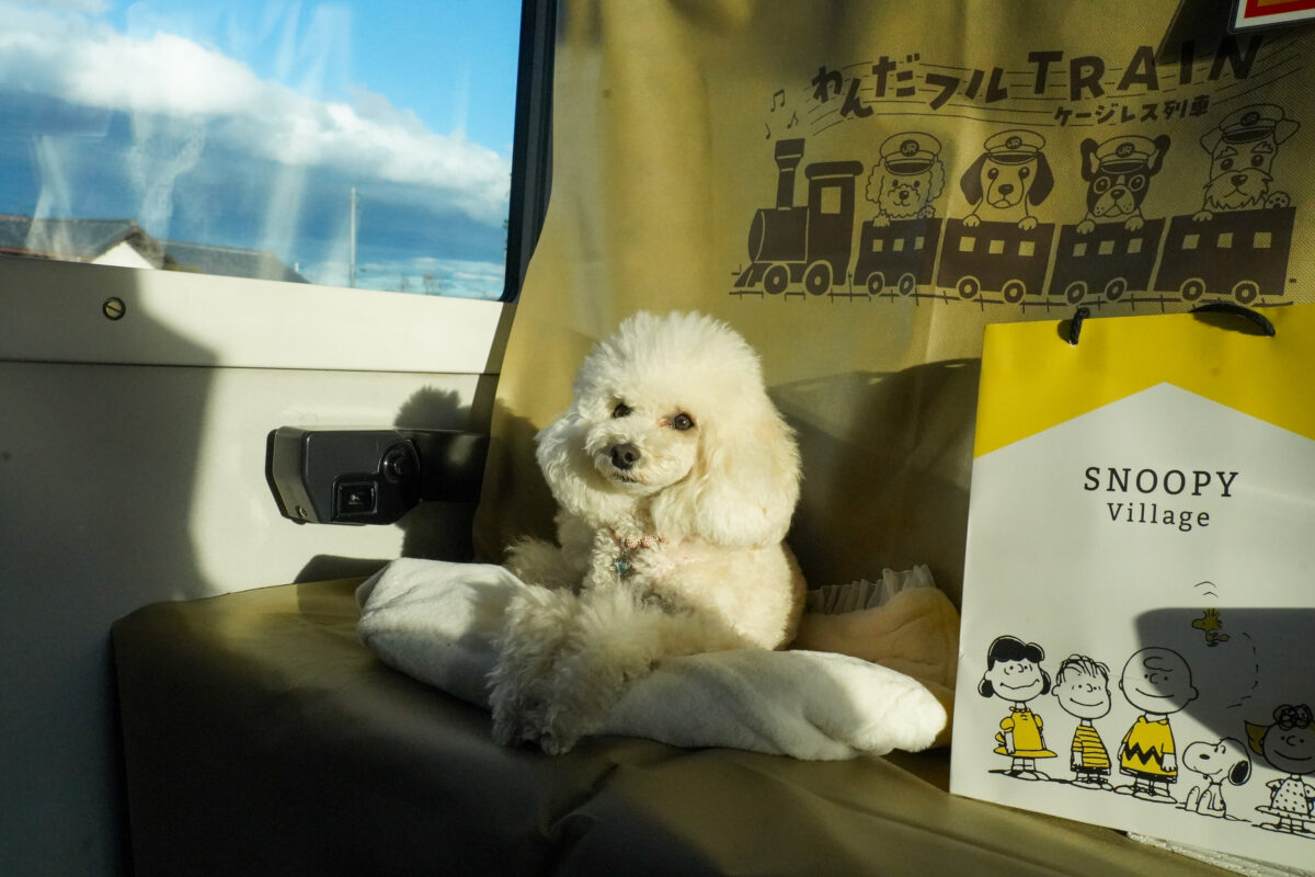 まず列車に乗って驚いたのが座席のシートです。かわいらしいシートに愛犬の写真パネルが貼ってあり、乗った瞬間からワクワクして楽しかったです。