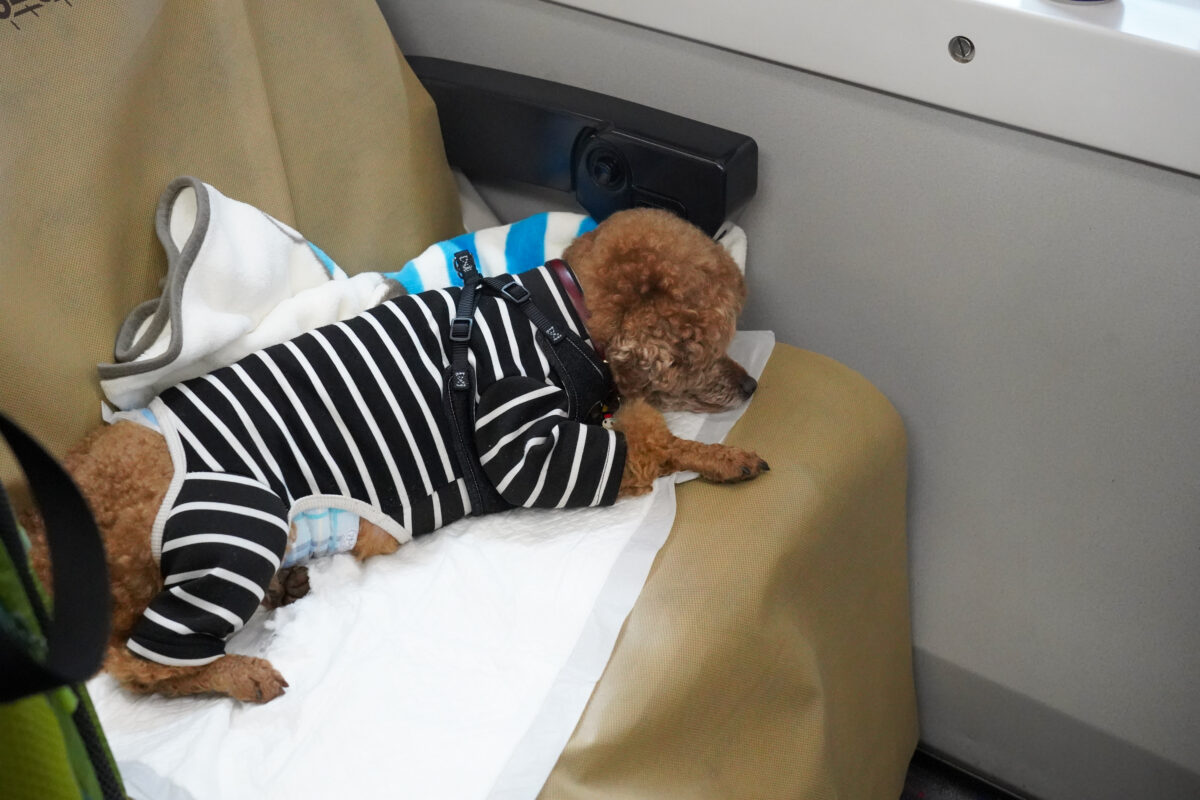 軽井沢でたっぷり遊んだあとは、再びケージレス列車で上野へ。わんこたちも、列車での旅にすっかり慣れた様子です。