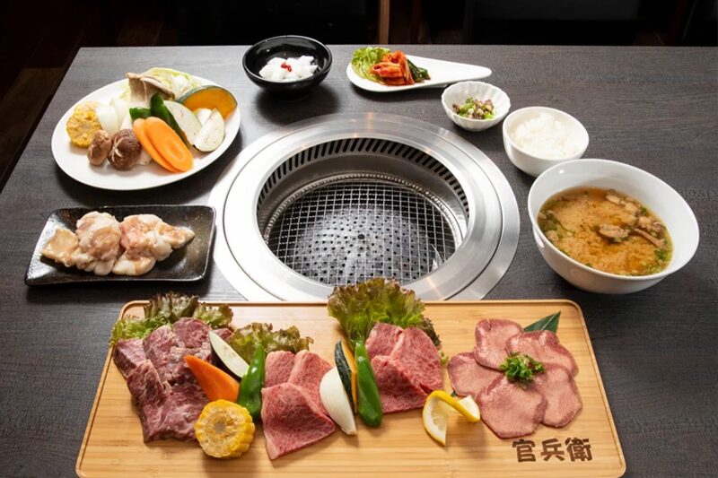 「焼肉&ステーキ 官兵衛」は店名の通り、焼肉とステーキを同時に味わえる贅沢なお店。お肉には九州直送の和牛肉が使用されています。