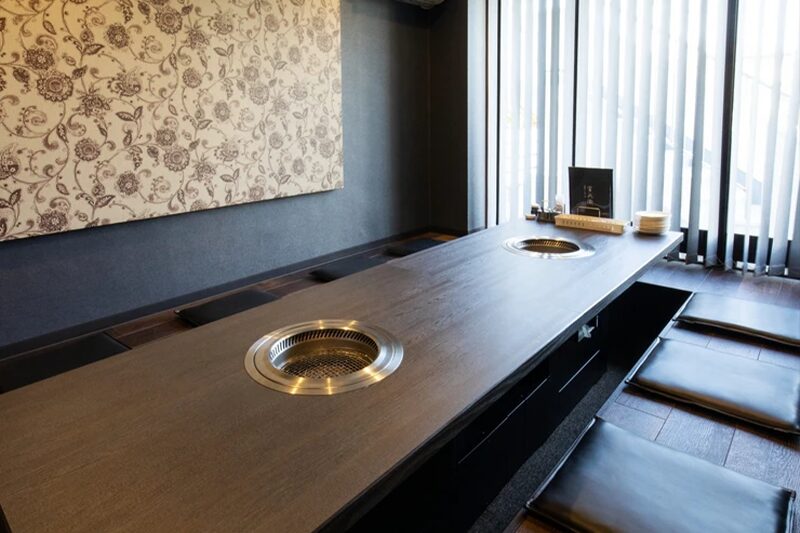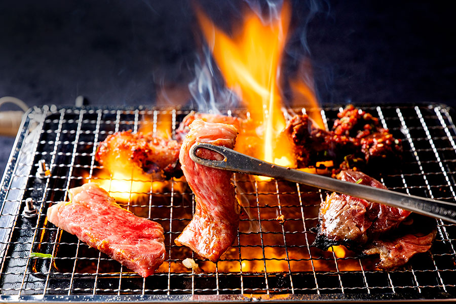 - 各テーブルには無煙ロースターを設置。快適な焼き心地でお肉本来の旨味を味わう