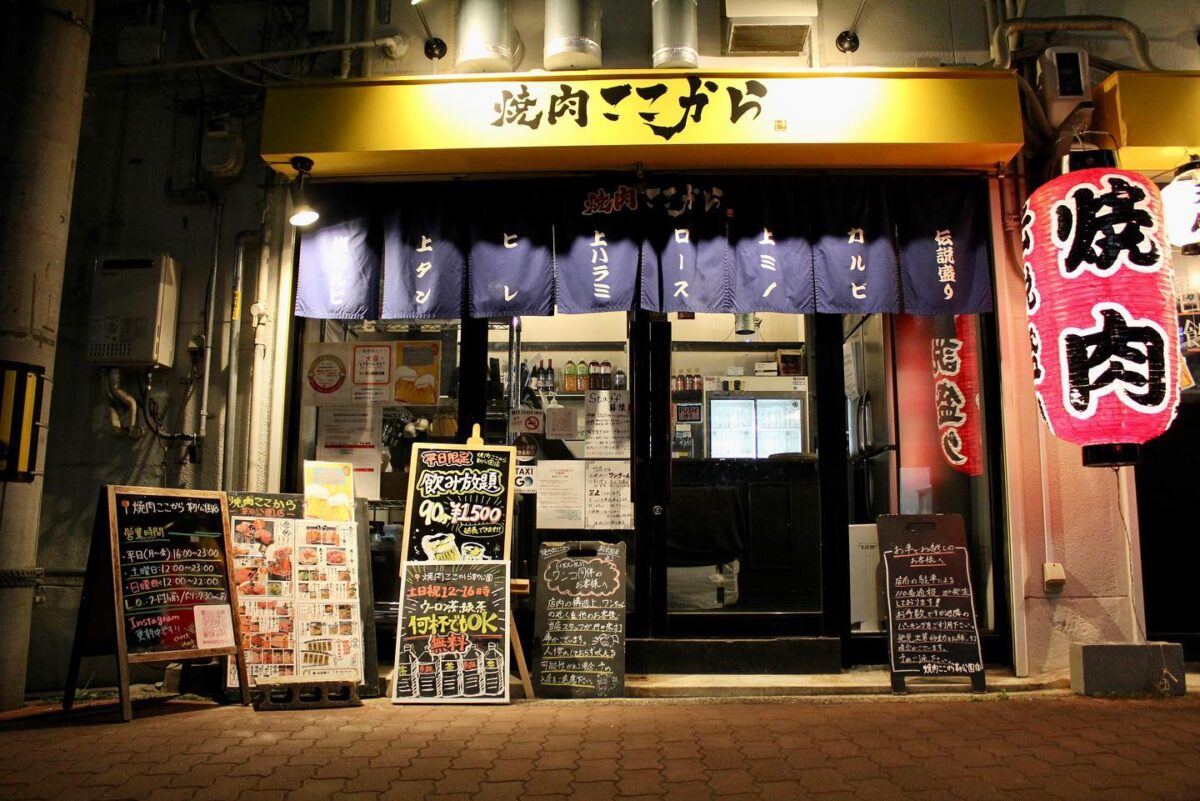 「焼肉ここから 靭公園店」は、昔懐かしい大衆居酒屋のような雰囲気のなかで焼肉を楽しめるお店。