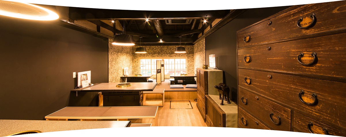 「焼肉・鍋 まるや」は、築70年の古民家をリノベーションして誕生した焼肉店。店内では全国でも希少なジビエ料理を思う存分堪能できます。